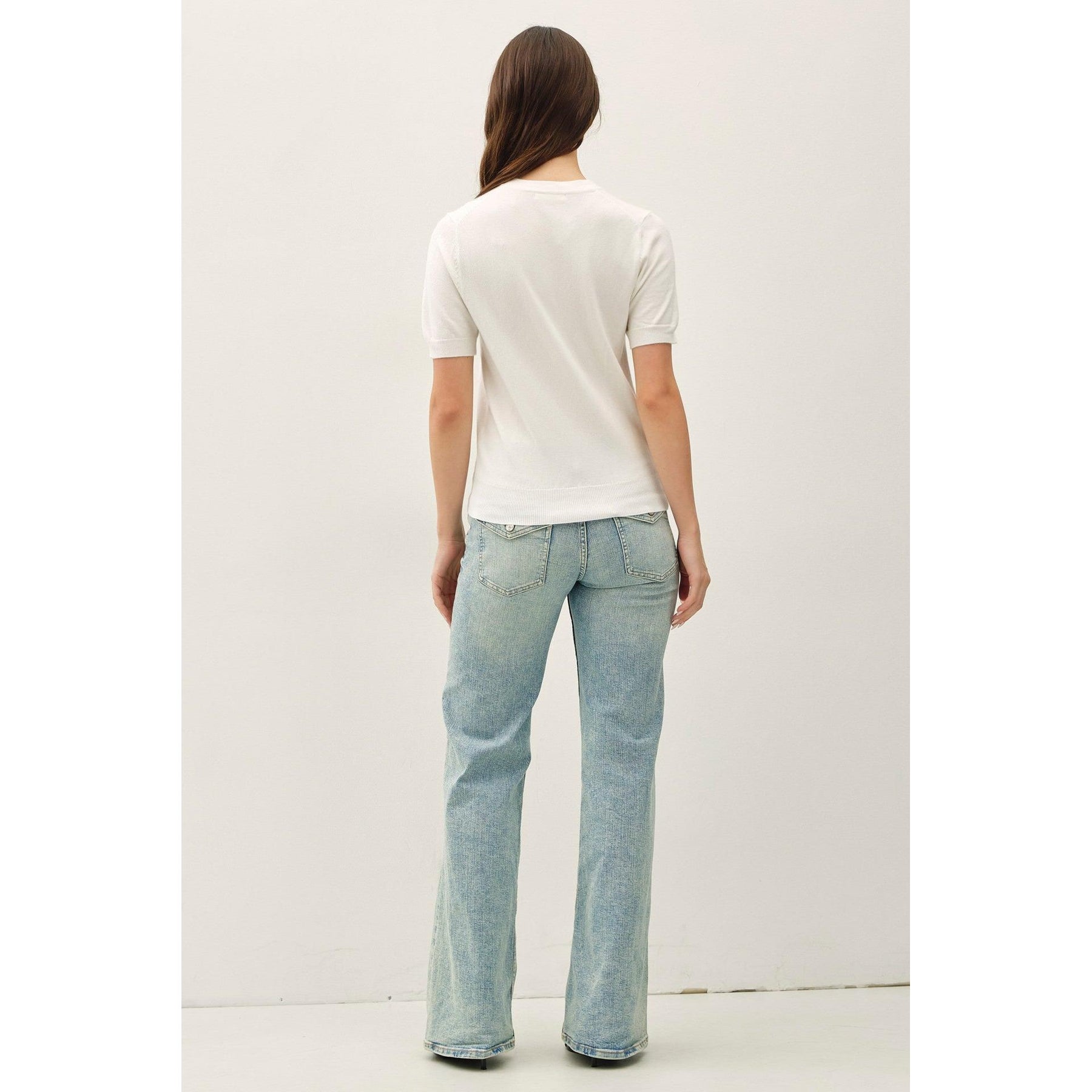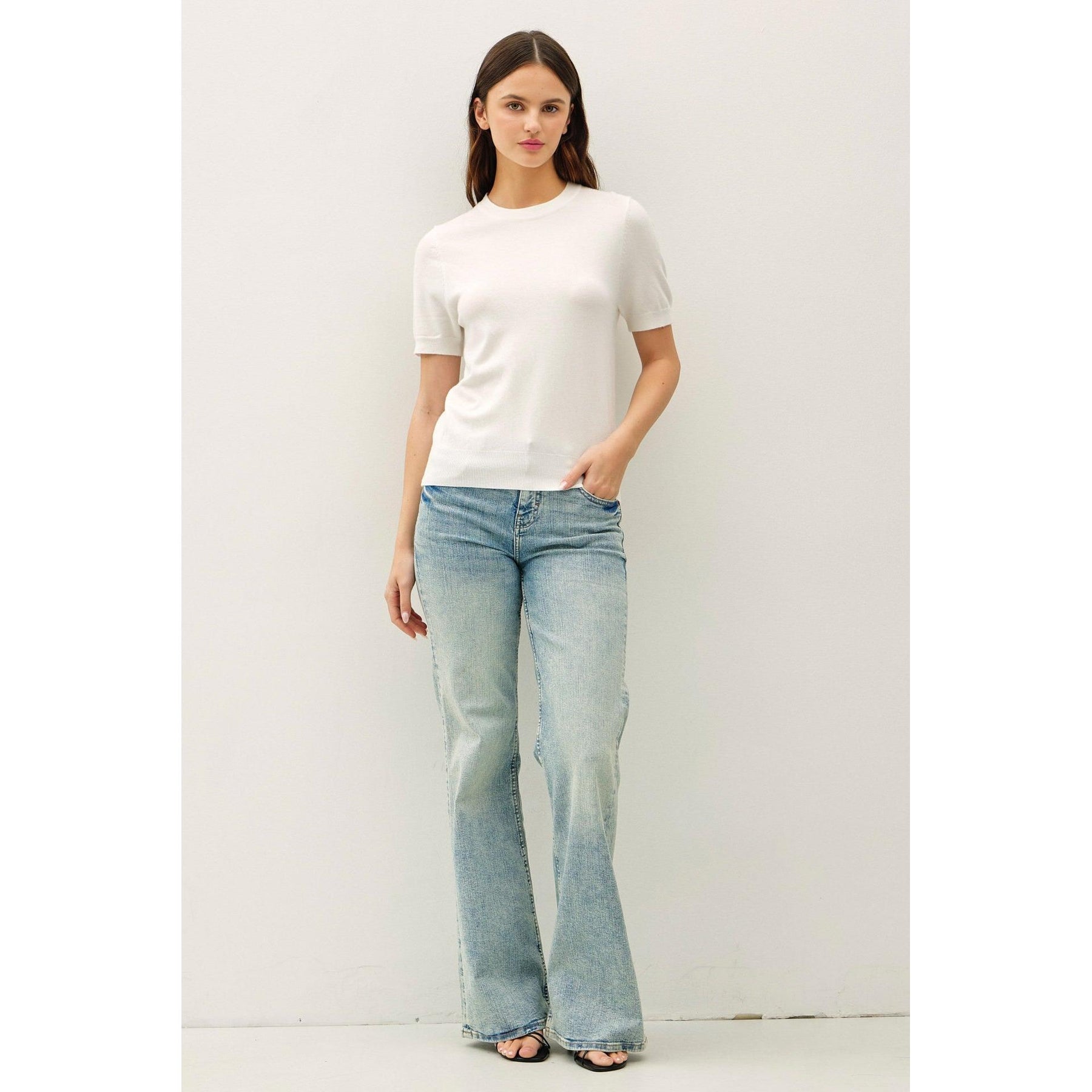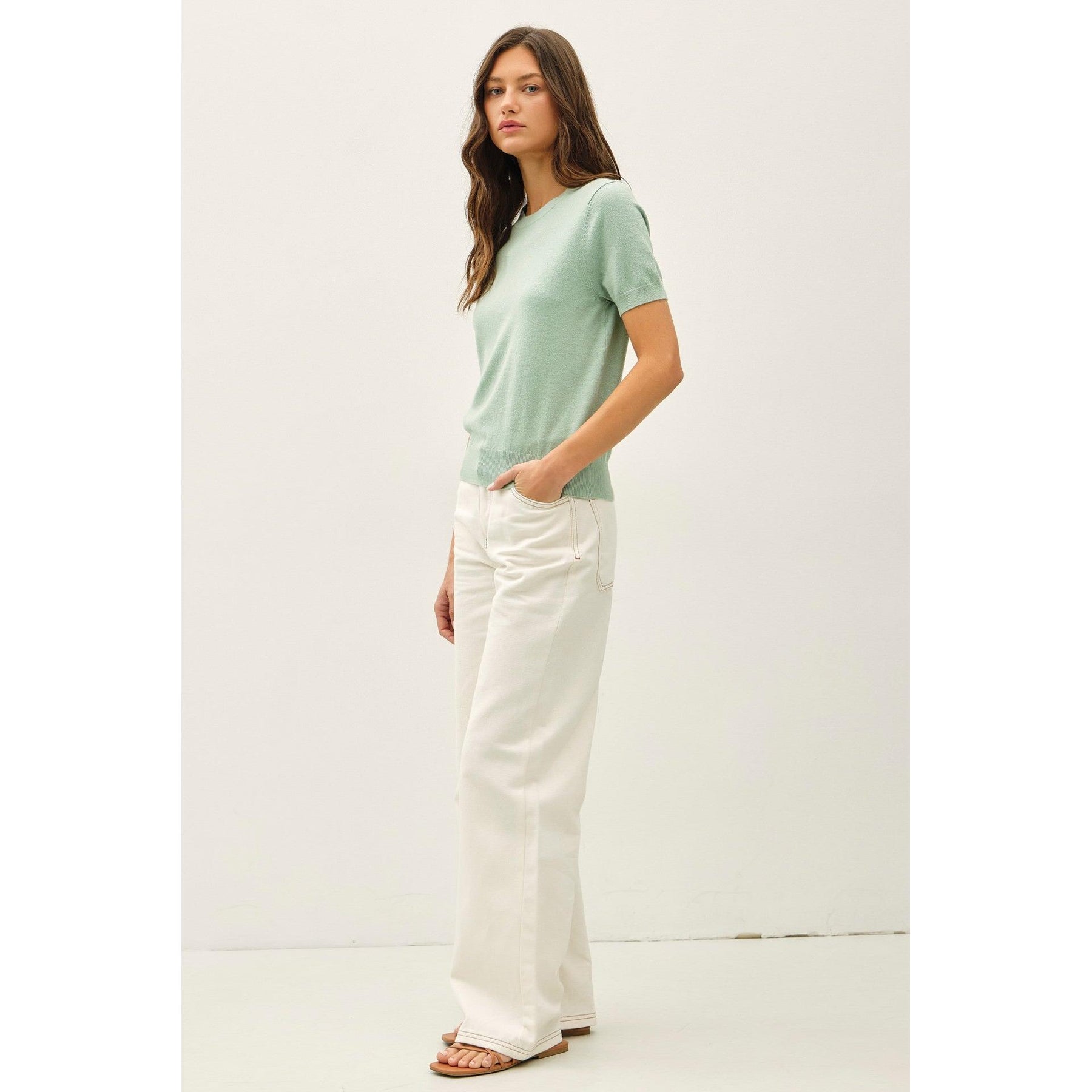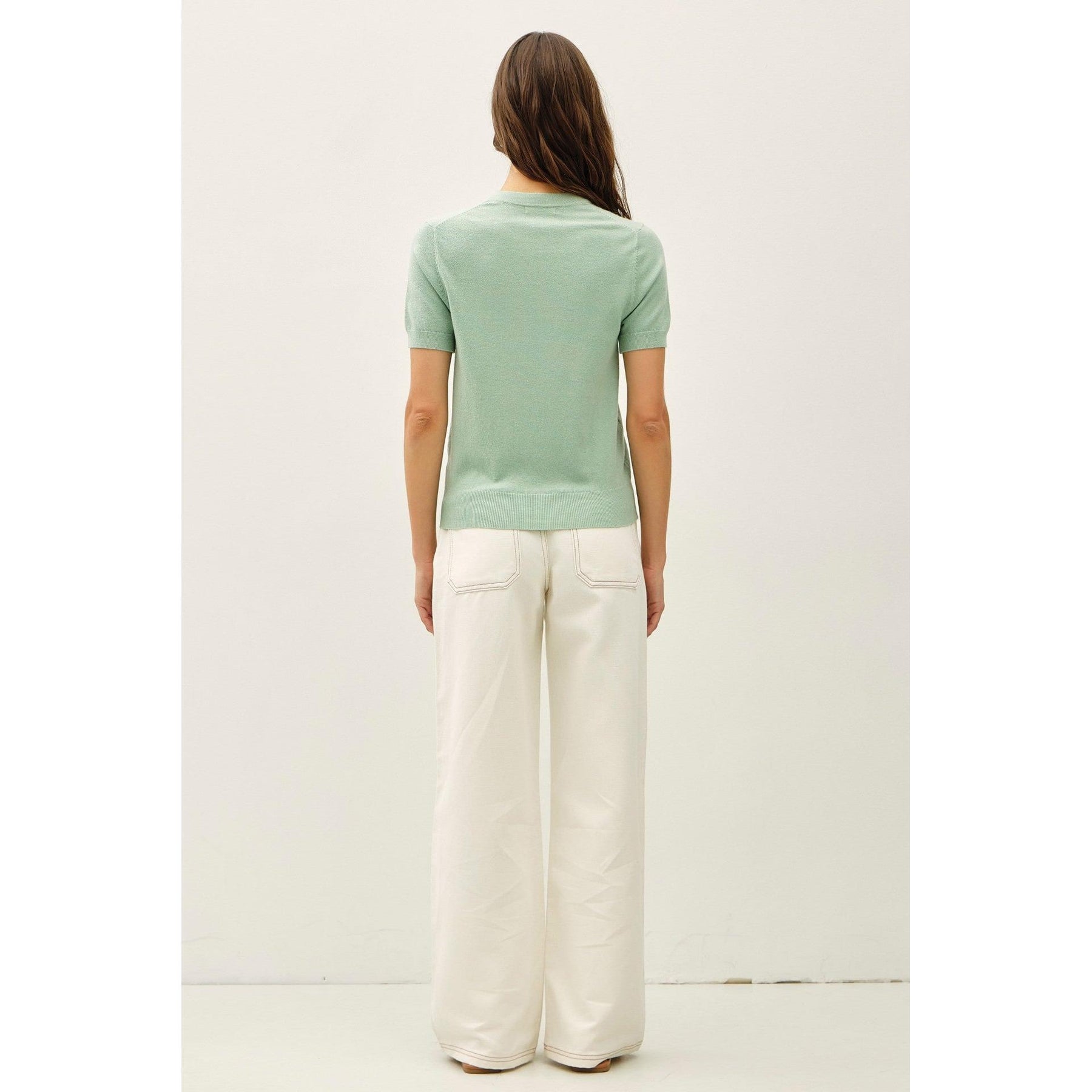 Effortless style meets comfort in this lightweight crewneck sweater. Perfect for layering or wearing solo, it features a classic scoop neckline with ribbed trim at the neck, cuffs, and hem for a polished finish. The short sleeves make it ideal for transitional weather, while the airy fabric keeps you cool without sacrificing that cozy sweater feel. A versatile wardrobe essential that works just as well over a tee as it does paired with your favorite jeans.