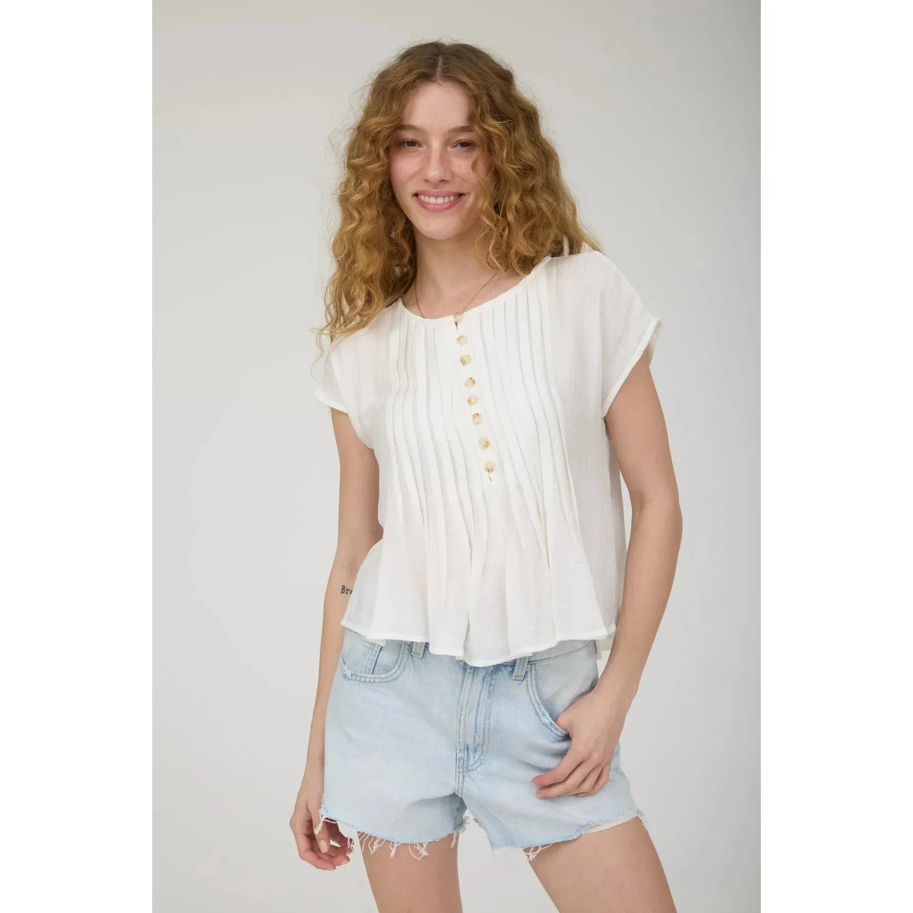 Button Pintuck top || White