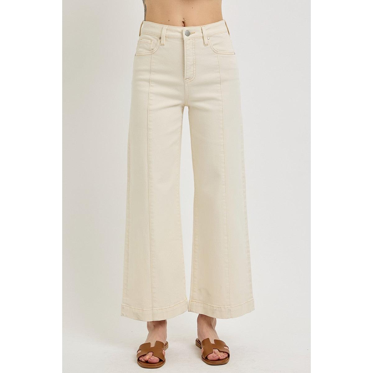 Flatter your midsection and own the room in these high-rise crop wide jeans! Featuring built-in tummy control technology, they smooth and sculpt while you move through your day with confidence. The cropped length pairs perfectly with sneakers or heels, while the wide-leg silhouette brings that effortless, on-trend vibe. In crisp ivory, they're the versatile piece your wardrobe's been waiting for. Comfort meets style—because looking good shouldn't feel like a compromise.